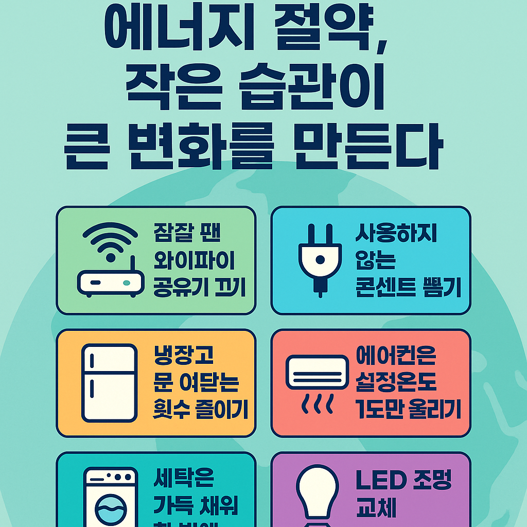 - 사용하지 않는 콘센트 뽑기 – 충전기, 셋톱박스, TV 등 대기 전력 차단만 해도 10% 절감됩니다.
